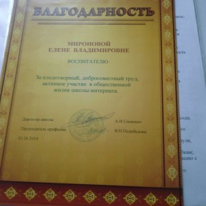 С 2014 г. – руководитель методического объединения воспитателей второго отделения