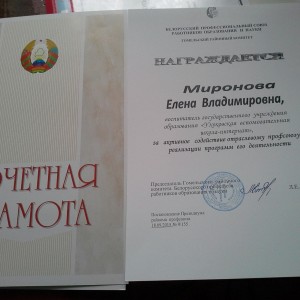 2006 – 2007 гг. –учеба в государственном учреждении образования « Академия последипломного образования по специальности «Интегрированное обучение и воспитание в школьном образовании»