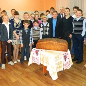 К областным Дожинкам — 2018 на Брагинщине ОАО «Гомельхлебпром» испекло 21 каравай с гербами всех районов области. По инициативе облисполкома было принято решение, что в рамках акции «Крошка в ладошку» каждый каравай после праздника уедет в свой район: в приёмные семьи, социальные центры, дома престарелых. В Гомельском районе каравай из зерна нового урожая достался нашей школе-интернату. Побывавший на празднике в Брагине хлеб, воспитанникам доставили заместитель председателя Гомельского райисполкома Игорь Леонидович Полуян и начальник отдела образования, спорта и туризма райисполкома Игорь Александрович Бейзеров. Этот кусочек хлебного каравая страны стал частичкой душевного тепла и внимания в Год малой родины. Акция нашла отклик в сердцах добрых людей: кондитерская фабрика «Летож» передала для наших ребят любимые сладости, а комбинат «Восток» — вкуснейшие яблоки. В свою очередь коллектив школы порадовал гостей небольшой концертной программой.