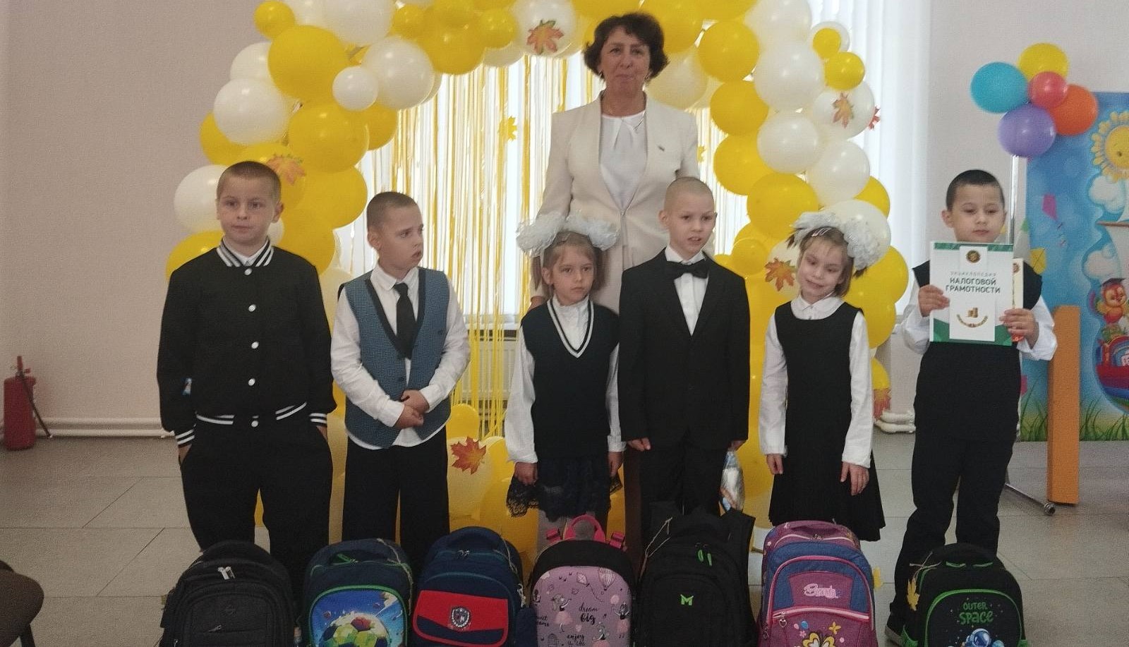 Сегодня портфели получили воспитанники нашей школы-интерната: Лукашов Ярослав, Мацакова Ангелина, Терновой Дмитрий, Зайцев Никита, Орлов Семён, Лапицкий Захар, Страхов Денис, а также Василенко Мария — дочь работницы нашего учреждения Василенко М.А..