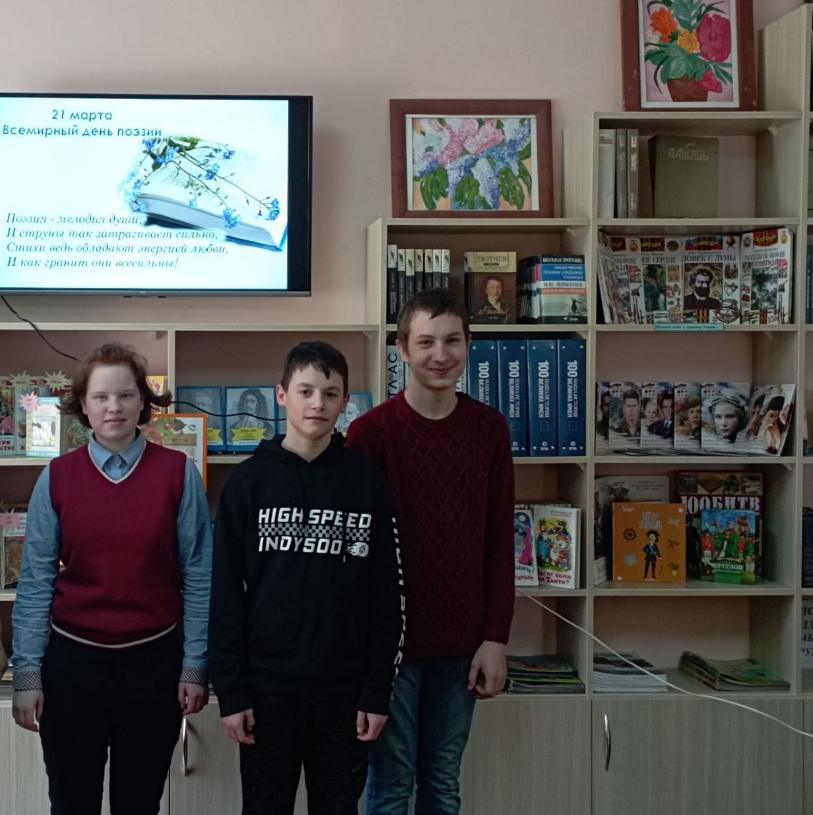 Сегодня учащиеся 10 класса приняли участие в поэтическом марафоне «Волшебных слов чудесный мир», посвященном Всемирному дню поэзии. На мероприятии ребята узнавали знаменитых поэтов на фотографиях, вспоминали строки известных стихотворений, подбирали рифмы к словам, окунувшись в мир прекрасной поэзии.
