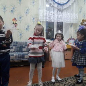 В дошкольном отделении воспитателем Минаевой Людмилой Александровной было проведено мероприятие «В гостях у Зимы». К ребятам в гости приходила Зима со своими развлечениями. Дети считали снежинки, лепили снежки, узнавали зимующих птиц… Закончилось занятие чаепитием, на которое пригласила Зима.