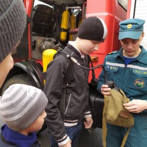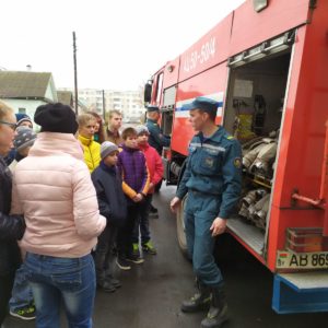 26 октября выдался особенный день для наших воспитанников. Ребятам предоставилась возможность побывать в пожарной аварийно-спасательной части № 3 Гомельского ГОЧС. Детям интересно было увидеть караульное помещение дежурной диспетчерской службы, посетить специальный гараж, в котором ребята смогли не только рассмотреть все детали пожарной техники, но и посидеть внутри пожарной машины, примерить снаряжение пожарного. Экскурсоводом был самый настоящий пожарный. По просьбе детей он рассказал увлекательные истории тушения пожара, спасения людей и животных. Экскурсия способствовала воспитанию ответственного и безопасного поведения детей, углублению знаний о правилах пожарной безопасности.