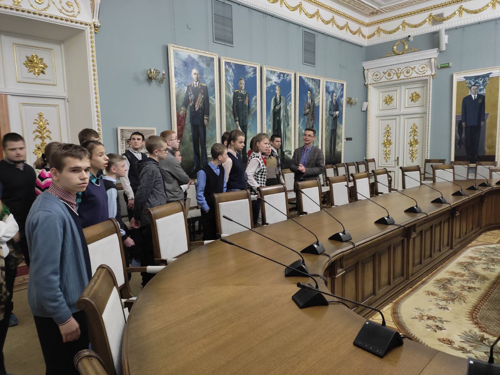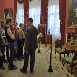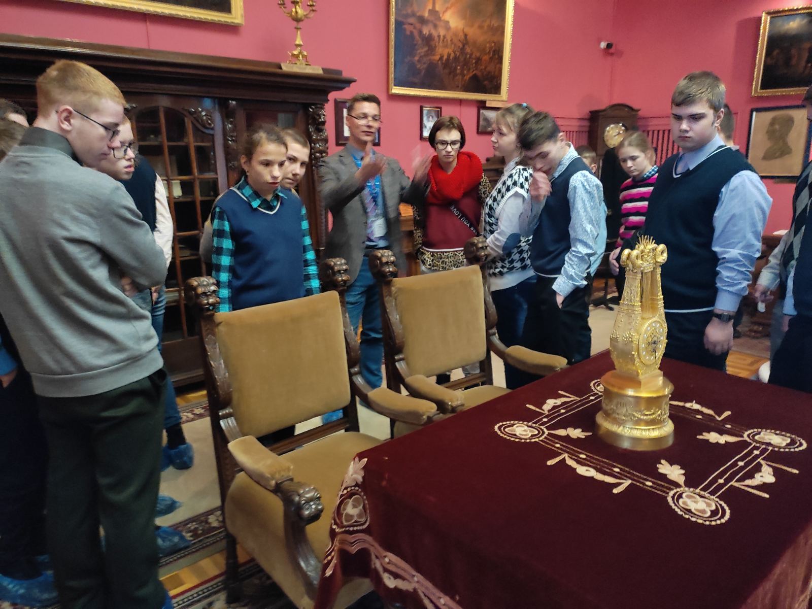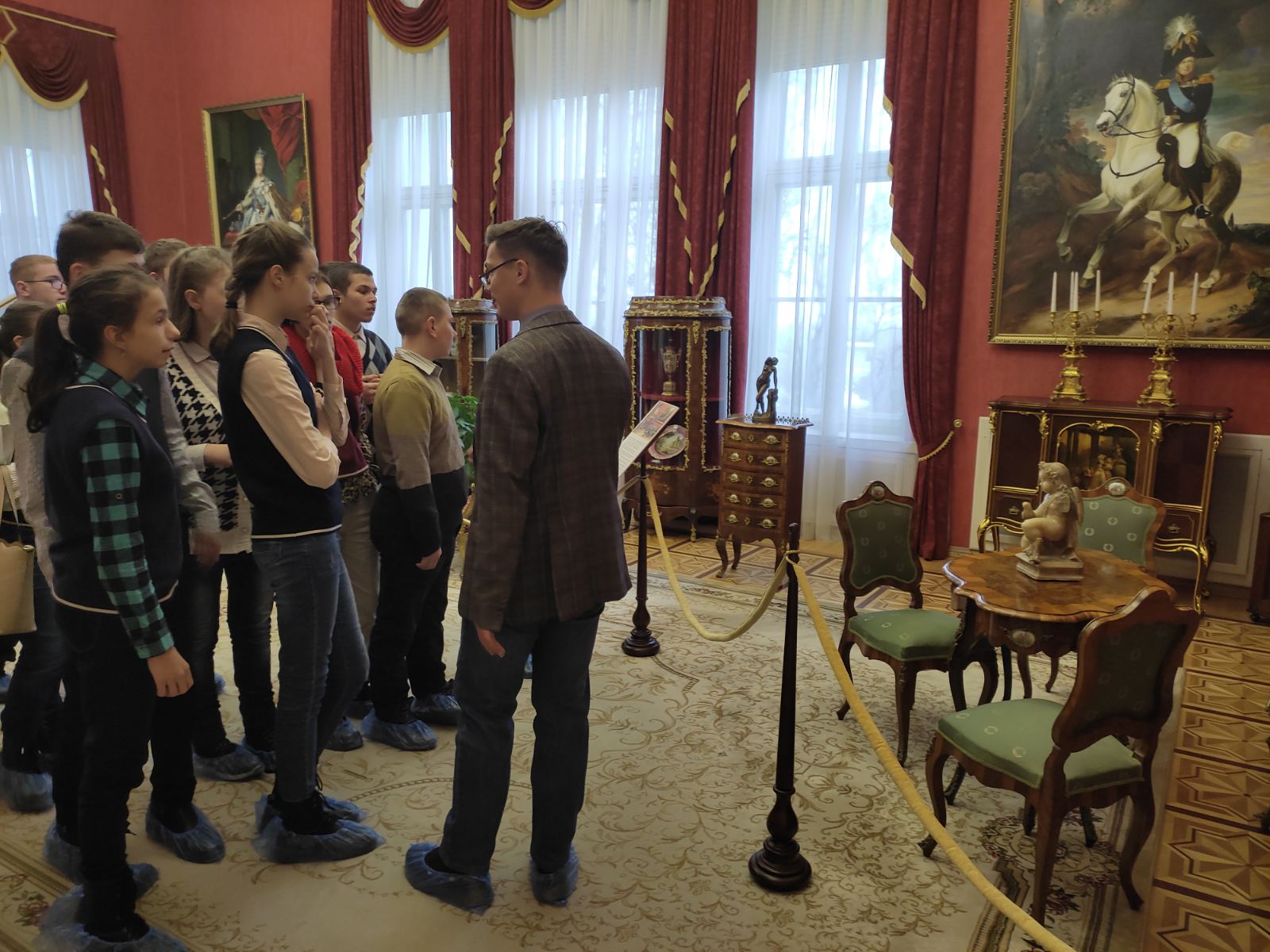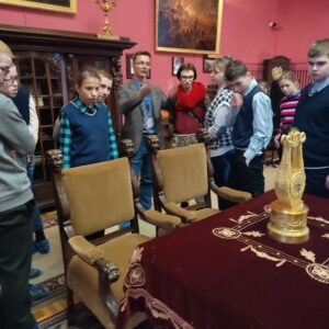 Сегодня учащиеся 8 «А», 9 «А» и 10 «А» классов были на экскурсии во Дворце Румянцевых и Паскевичей, история которого насчитывает более двух веков. Ребята побывали в центральной части и башне дворца, посетили Колонный зал, Красную и Белую гостиные, Северную галерею, зал торжественных приемов, библиотеку и другие уголки музея. Обаятельный и энергичный экскурсовод Вадим увлек детей своим интересным повествованием об истории дворца и его владельцах. Ребята с интересом слушали гида, рассматривая интерьеры и экспонаты той эпохи.