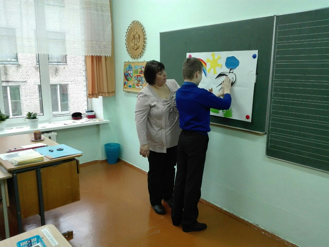 Учителем Синцовой Татьяной Владимировной был проведен открытый урок по учебному предмету «Элементы арифметики» в 6 «Б» классе (2 отделение) по теме «Ориентировка в пространстве: вверху — внизу». Ребята отправились в увлекательное весеннее путешествие. Ученики считали сосульки, подснежники на полянке, прилетевших скворцов, закрепляя количественный и порядковый счет. Упражняясь в нахождении соседей числа, помогли зайчику сменить зимнюю шубку. Оказавшись на весеннем лугу, где порхала бабочка, закрепляли ориентировку на листе бумаги. Вспомнили и про весенние праздники, составив и решив задачу про куличи. В конце урока, закрепляя полученные знания, дети расколдовали картину весны, разместив на доске солнышко, радугу, облако, цветы, травку, бабочек, птиц. Весеннее путешествие состоялось!