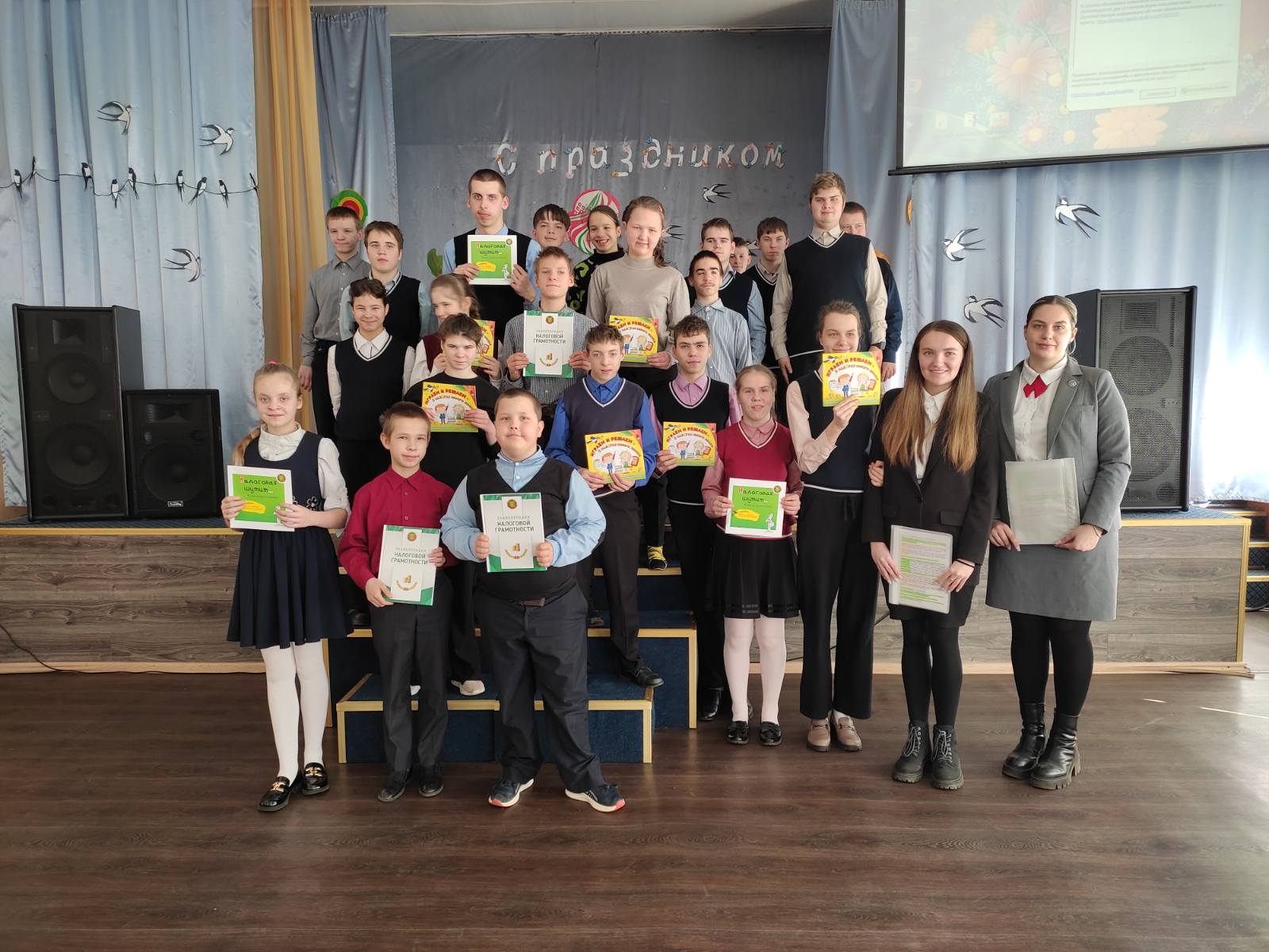 19 марта в нашей школе состоялась важная встреча учащихся с представителями Инспекции Министерства по налогам и сборам Гомельского района. Специалисты провели с ребятами познавательную беседу, в доступной форме рассказав о том, что такое налоги, как формируется бюджет страны и на какие важные общественные цели направляются эти средства. Обучающая беседа дополнилась показом увлекательного мультфильма «Рассказ о Фоме и о налогах», который очень понравился детям и помог закрепить новые знания. Приятным завершением встречи стал полезный подарок от гостей. Сотрудники Налоговой инспекции передали для наших учащихся подборку книг, посвященных налоговой и финансовой грамотности.