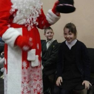 Учащиеся гимназии № 11 города Гомеля привезли Новогоднюю программу для воспитанников школы. Ребятишки с удовольствием играли в игры, пели песни, танцевали. Замечательным подарком для детей стали книги, мягкие игрушки, сладости, а также внимание и поддержка сверстников.