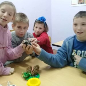 Воспитатель Мезенцева С.А. провела конкурс рождественских поделок. Ребята из 5 «Б», 3 «А» и 3 «Б» классов приняли в нём активное участие, проявили творчество и фантазию. Дети с удовольствием вырезали и раскрашивали, клеили, лепили и украшали ёлочные игрушки. В работе использовали разные материалы: пластилин, картон, золотой песок, шишки и др. Каждая поделка заняла достойное место.