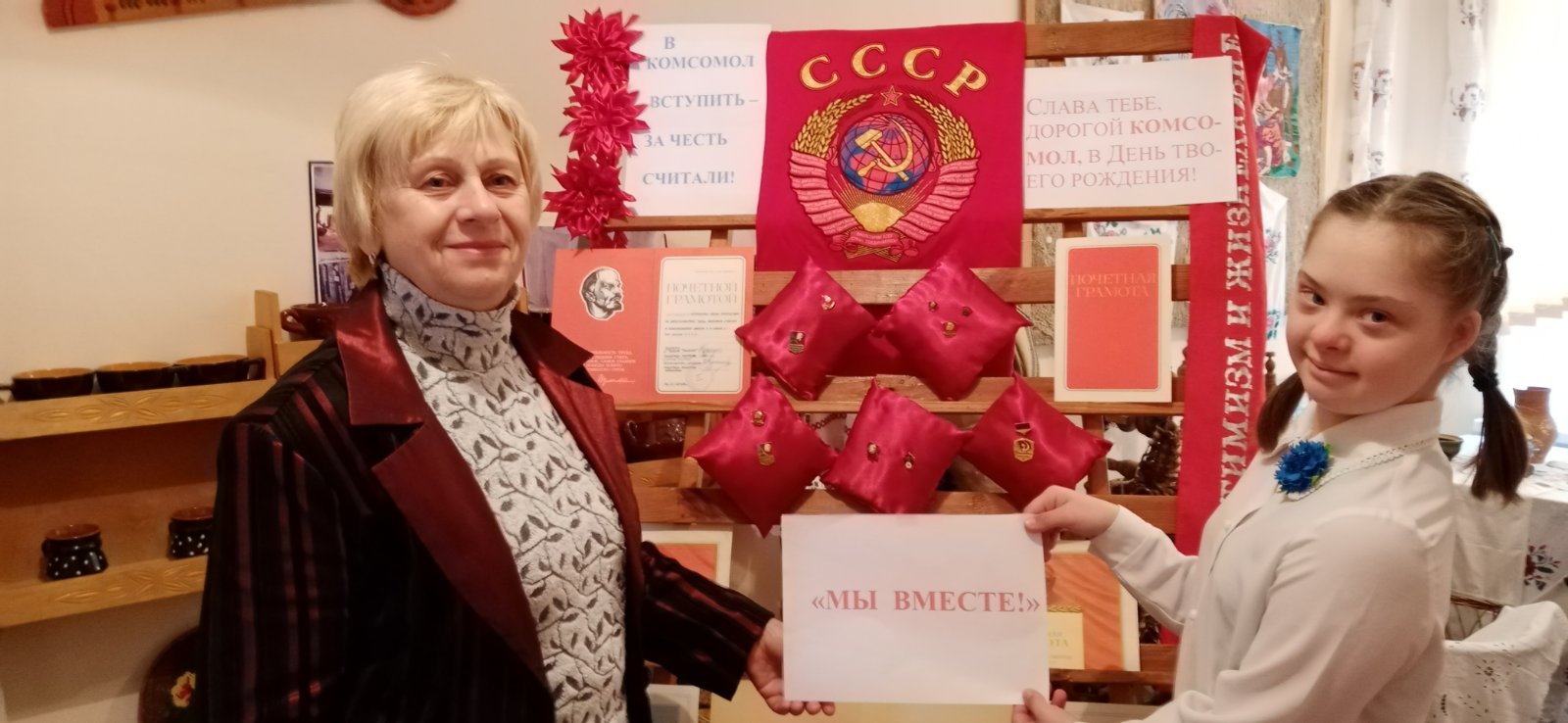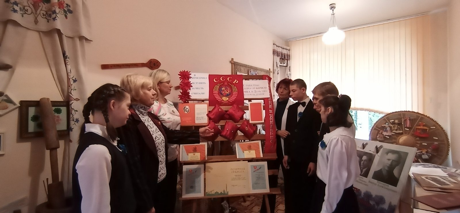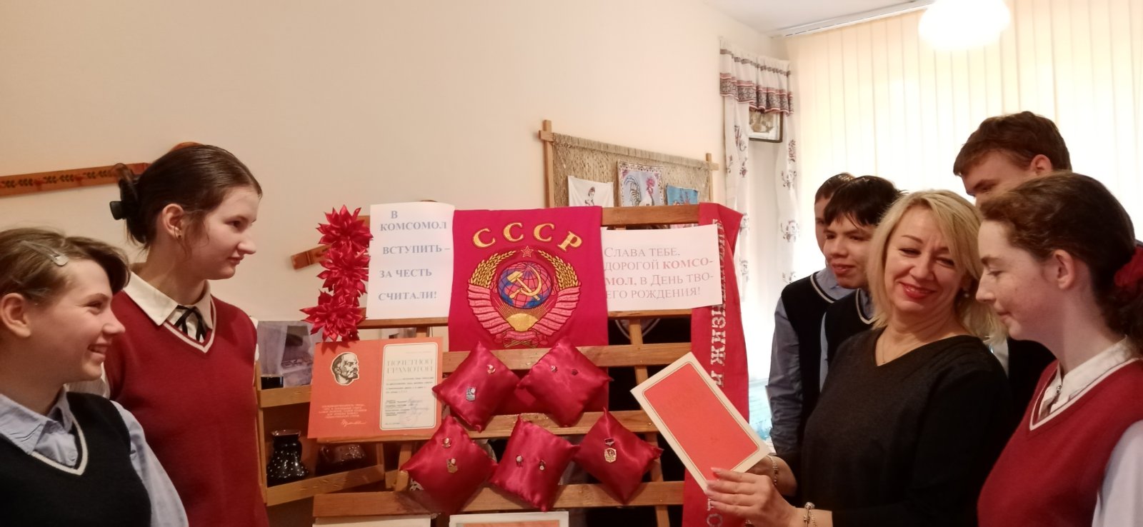 Выставка символики, наград и фото комсомольского движения «В комсомол вступить за честь считали».