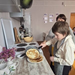 Масленичный запёк блинов в кабинете социально-бытовой ориентировки «Встречаем Масленицу блинами».
