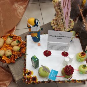 Сегодня состоялся 15-й областной экологический конкурс «Зелёный витамин», проводимый в рамках благотворительной программы «Юные дарования и экология ХХI века». На суд жюри и зрителей нашим учреждением была представлена выставка «Музей науки», где все экспонаты выполнены из цветов, овощей, фруктов и природных материалов. Наша экспозиция заняла почетное 2-ое место!