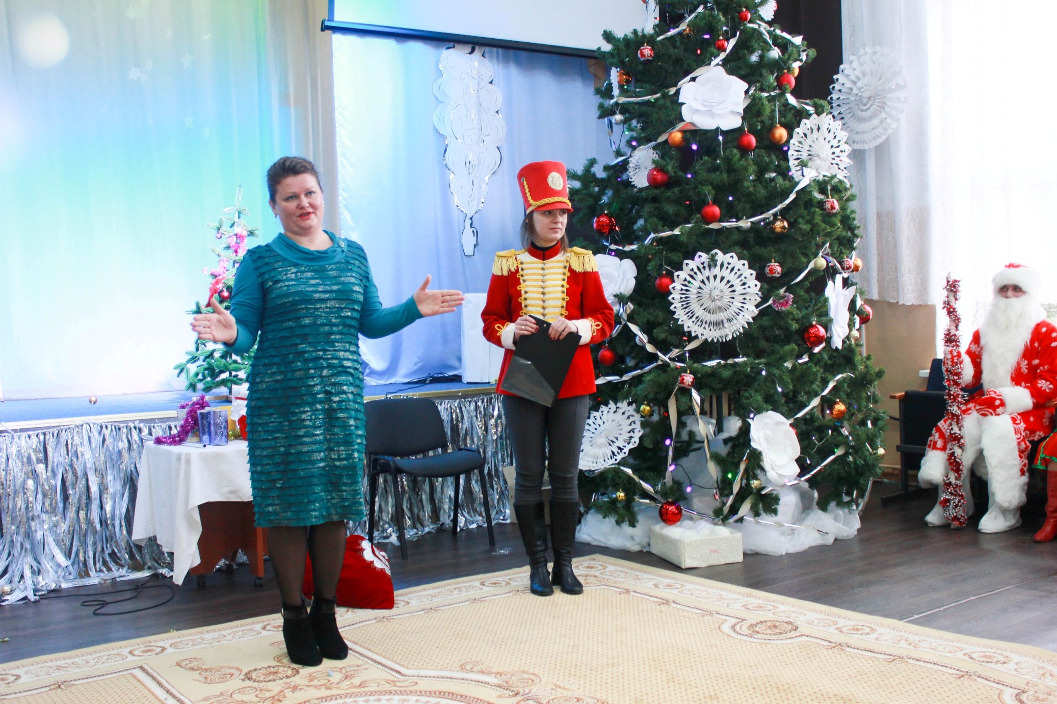 Кто бы мог подумать, что наших самых маленьких воспитанников ожидают такие необыкновенные приключения на новогоднем утреннике? Вместе с Машей и Медведем из полюбившегося всем мультика ребятам пришлось спасать праздник, который оказался под угрозой, потому что Дед Мороз заболел. Как Маша ни пыталась вылечить Дедушку, ничего у нее не получилось. И даже стихи, которые рассказали дети, не помогли Морозу. Пришлось Маше и Медведю самим спасать Новый год и разносить всем подарки. А пока они были заняты таким важным делом, появилась Снегурочка и вылечила Дедушку Мороза. Тут уж и у ребят самый настоящий праздник начался: и елочка огнями разноцветными засверкала, и подарки Дед Мороз наколдовал, и гостей созвал! А гости у ребят не простые были, а самые долгожданные — студенты экономического факультета ГГУ имени Ф.Скорины с преподавателем Башлаковой Ольгой Сергеевной. Они тоже подготовили для детишек подарки. Замечательный праздник получился у наших дошколят!