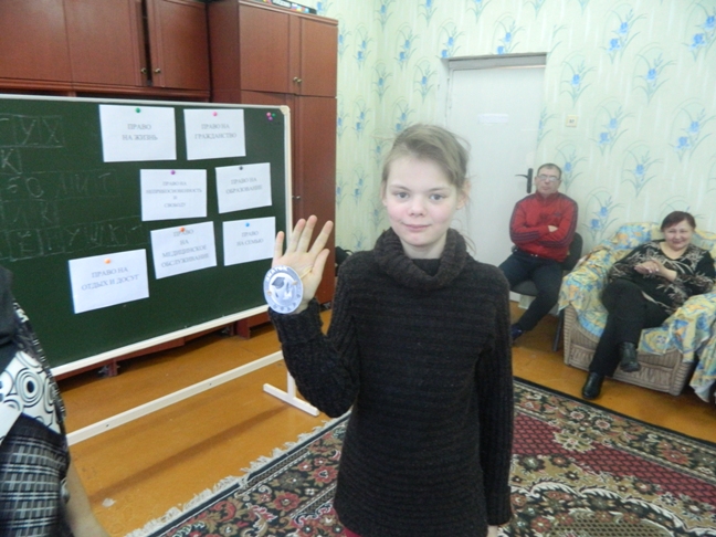 В рамках работы методического объединения воспитателей средних и старших классов Еленой Григорьевной Богданец было проведено открытое занятие по правовому воспитанию, тема которого «О правах, играя!» Разгадав кроссворд, учащиеся 6 класса узнали, о чем будет идти речь. Далее поэтапно воспитанники знакомились со своими правами. «Шляпа знакомств» и свидетельство о рождении познакомили с правом на гражданство. Путешествуя по сказкам, дети выяснили, что каждый имеет право на свободу и личную неприкосновенность. В игре «Найди лишнее» ребята познакомились с правом на образование. Веселые разноцветные ладошки рассказали о праве на отдых и досуг. Так же воспитанники узнали о праве на жизнь, медицинское обслуживание, семью. В конце занятия каждый ученик получил значок «Знаток прав».