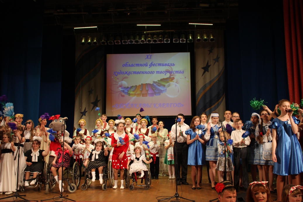 4 мая состоялся гала-концерт 11 областного фестиваля художественного творчества «Вясёлкавы карагод», который был третьим этапом республиканского фестиваля, проходящего один раз в три года в «Национальном детском образовательно-оздоровительном центре «Зубрёнок». На зональных этапах жюри отобрало лучшие из представленных учреждениями специального образования номеров, среди которых оказались и наши три композиции. К фестивалю также была подготовлена выставка работ декоративно-прикладного творчества учащихся. По окончании гала-концерта состоялась церемония вручения дипломов и призов управления образования Гомельского облисполкома и Министерства образования Республики Беларусь. У нас пять дипломов: МИНИСТЕРСТВА ОБРАЗОВАНИЯ за третье место в выставке декоративно-прикладного творчества, исполнителям танца «Пингвины», Радченко Илье за активное участие в выставке и УПРАВЛЕНИЯ ОБРАЗОВАНИЯ за третье место в конкурсе художественной самодеятельности, второе место в выставке декоративно-прикладного творчества. УРА!!! МЫ МОЛОДЦЫ!!!