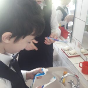 В группе воспитанников 1 «А» и 2 «А» классов состоялось открытое занятие педагога Пчелинцевой Алеси Николаевны по формированию навыков самообслуживания на тему «Чистим зубы правильно». На занятии ребята вспоминали правила ухода за полостью рта. С неподдельным интересом узнали дети о полезных и вредных для зубов продуктах. Особое внимание было уделено технике ухода за ротовой полостью, формированию умения правильно чистить зубы.