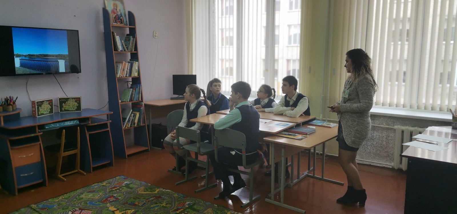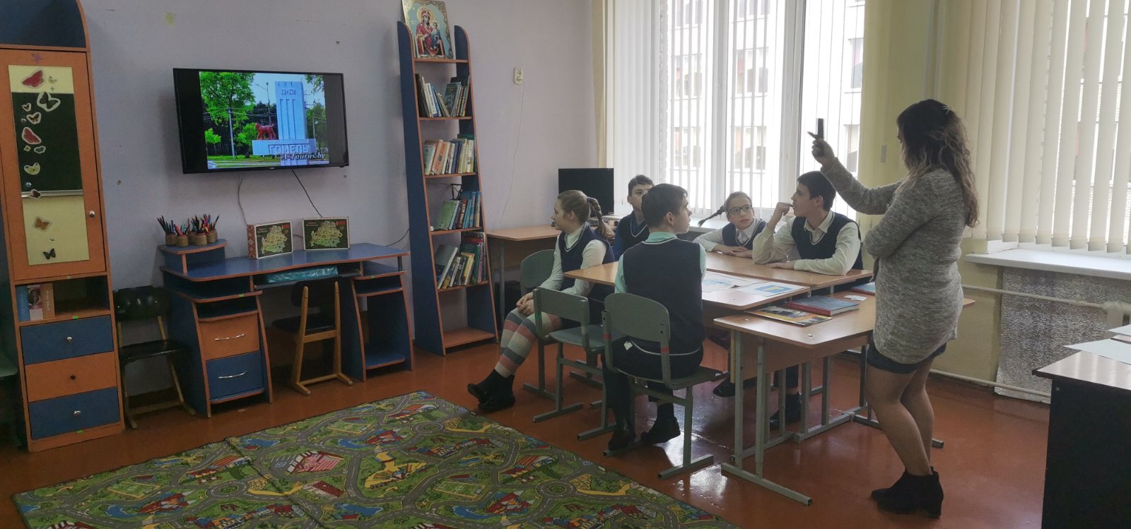 7 апреля Гончарова Юлия Ивановна в рамках УМО воспитателей 6 — 10 классов провела в 7 «А» классе занятие по гражданско-патриотическому воспитанию «Мой город Гомель». В начале занятия, рассматривая карту Беларуси, ребята с педагогом поговорили о нашей родине, вспомнили понятие «малая родина». Далее перешли к изучению карты Гомельской области. Посмотрели видеоэкскурсию по родному краю, остановившись на достопримечательностях города, совершили виртуальную прогулку по парку. Поговорили и о близлежащих городах. Ребят заинтересовали места, где они родились. В конце занятия дети с интересом поиграли в игру по инфраструктуре города.