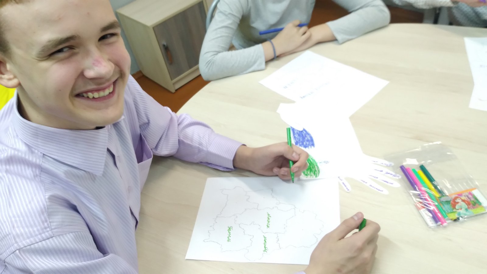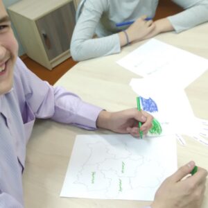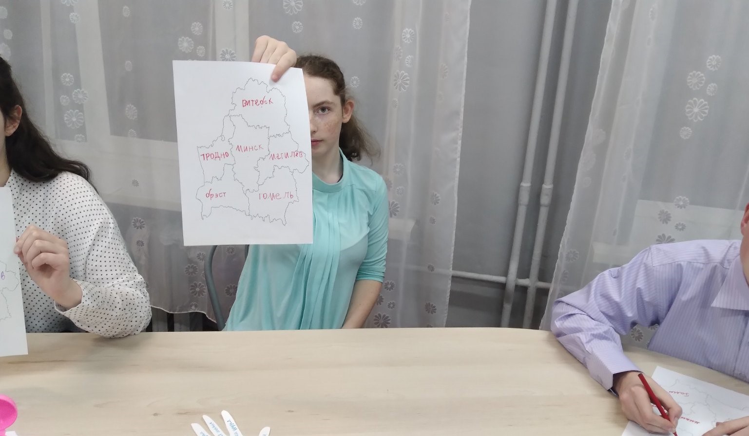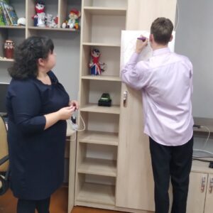 7 ноября в рамках УМО воспитателей 6 — 10 классов прошло открытое занятие в 9 «А» классе воспитателя Исаченко Юлии Александровны по теме «Моя Родина — Беларусь». На занятии дети закрепили знания о символике Республики Беларусь, административно-территориальном делении страны, поговорили о малой родине. На карту-схему нанесли областные города. Рисовали природу Беларуси. Словами описывали свою малую родину на контурах ладошек. В конце занятия создали большую карту Беларуси и наклеили на нее ладошки.