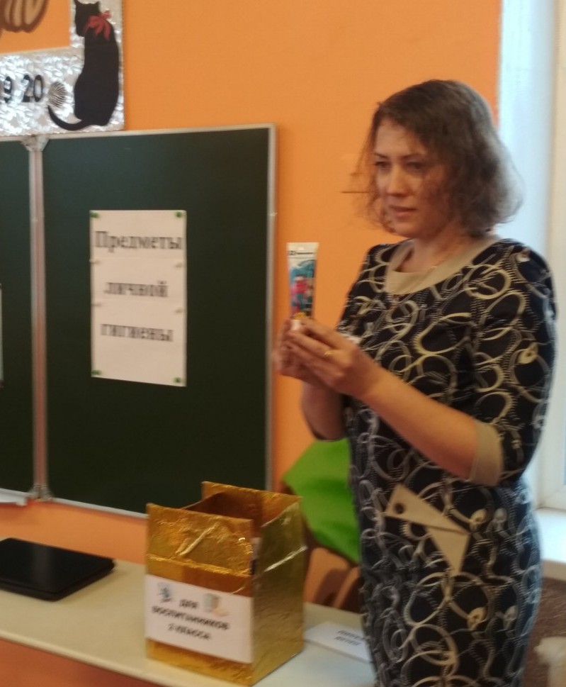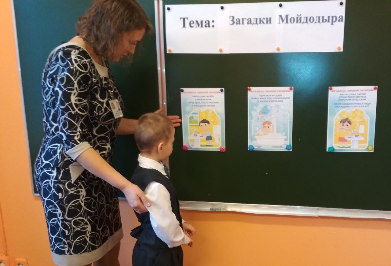 12 февраля воспитатель Боброва Любовь Анатольевна пригласила педагогов на открытое занятие во 2 классе по теме «Загадки Мойдодыра», содержание которого было направлено на закрепление знаний детей о предметах личной гигиены. Занятие началось с приветствия гостей и просмотра фрагмента мультфильма «Мойдодыр», что позволило привлечь внимание воспитанников, подвести их к нужной теме и вызвать интерес. Далее ребята выполняли различные практические задания: отгадывали загадки, которые прислал им Мойдодыр в посылке, играли в игры («Чем я могу поделиться?», «Правильный совет»), параллельно вели беседу о правилах личной гигиены. Во время работы было своевременно предупреждено переутомление детей путем использования физминутки «Кто умеет чисто мыться?». В конце занятия всем детям были вручены медали «Чистюля», чтобы вызвать у них желание быть всегда чистыми и опрятными, соблюдать правила личной гигиены.