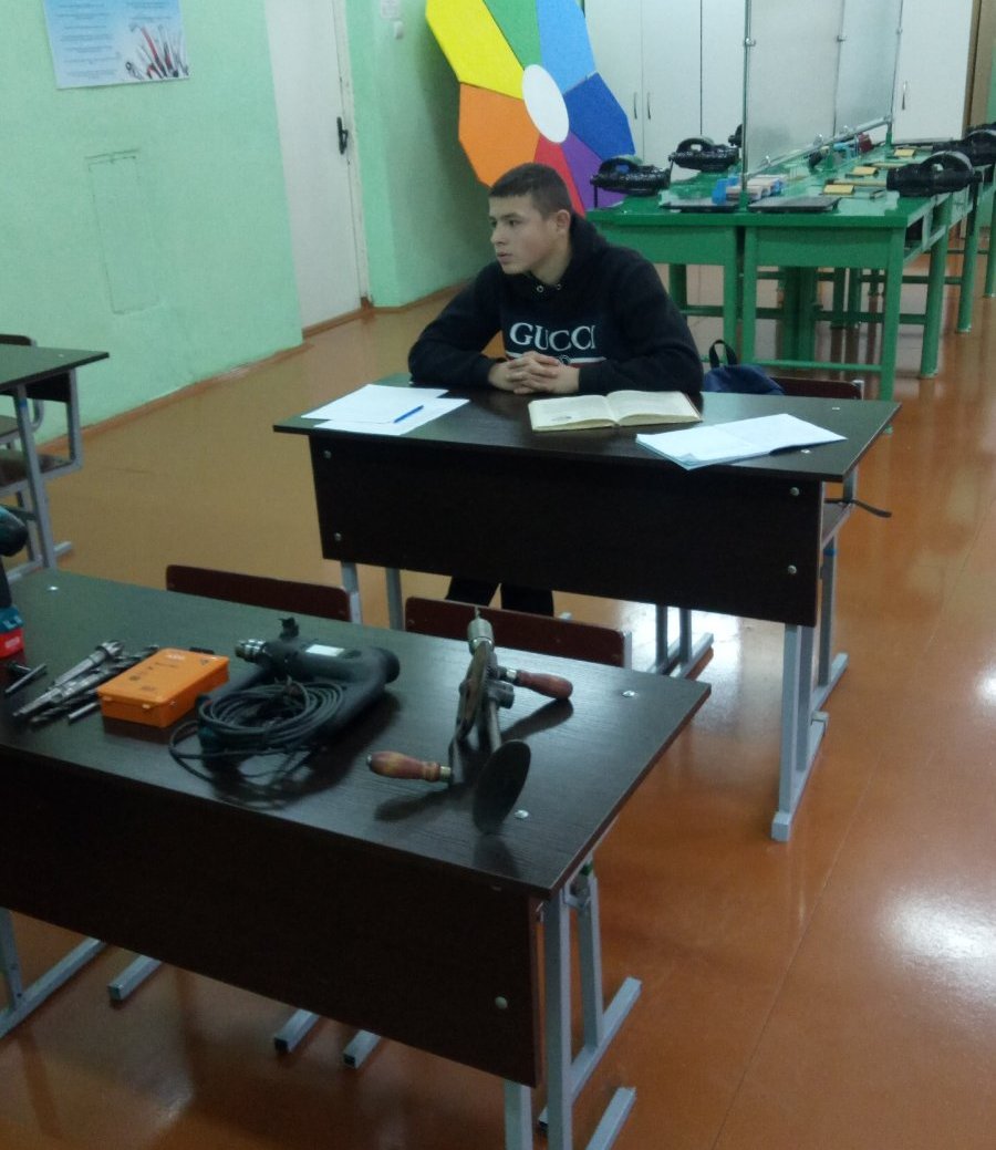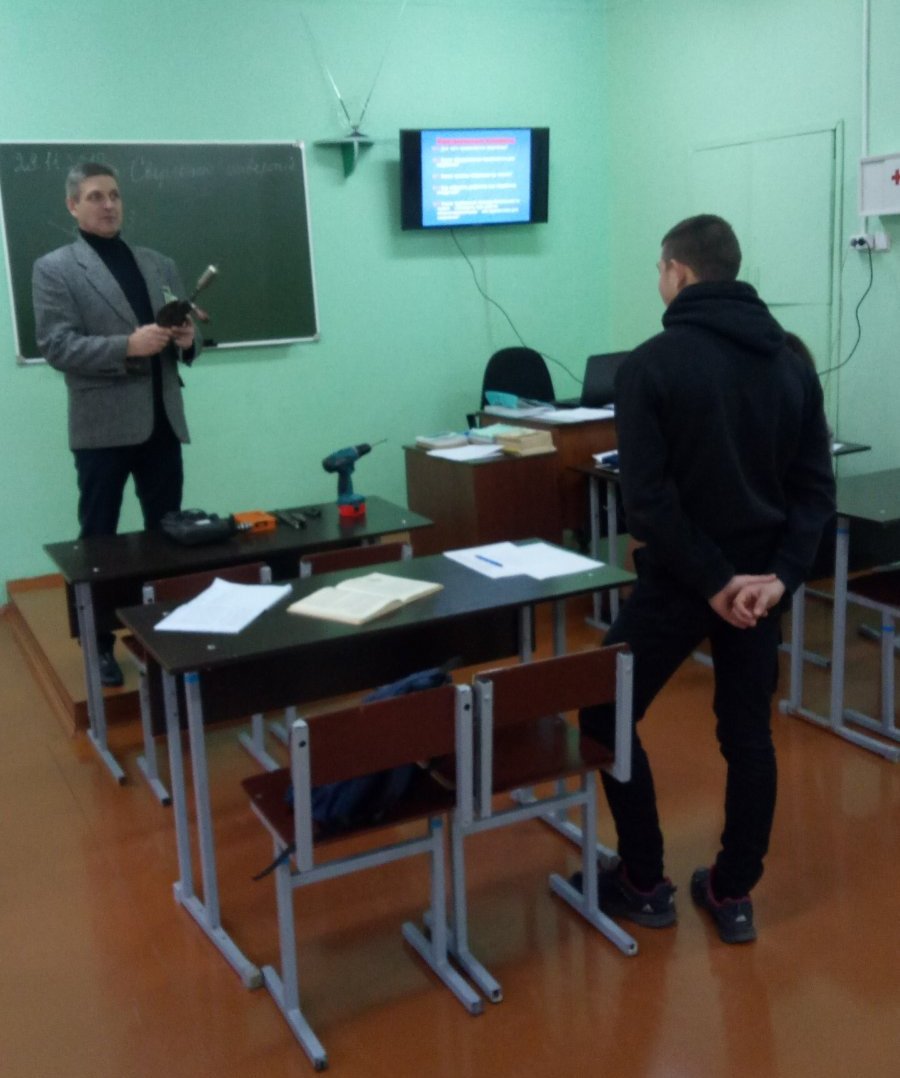 28 ноября Постоловский Александр Иванович провел открытый урок по трудовому обучению в 10 классе по теме «Сверление отверстий в металле». С целью проверки знаний по пройденному материалу были предложены тесты. Новый материал вначале изучали с опорой на презентацию «Сверление отверстий». Познакомились с инструментом для сверления (набор свёрл, патрон) и оборудованием (коловорот, электродрель, аккумуляторная дрель, сверлильный станок). Узнав, что такое операция сверления, рассмотрели устройство свёрл и их различные виды. Познакомились с принципами работы при сверлении глухих и сквозных отверстий. Совместно с Кузьменковым Максимом были сформулированы правила охраны труда при работе с режущим инструментом. После изучения теоретического материала была выполнена практическая работа по сверлению отверстий. С поставленной задачей удалось успешно справиться!
