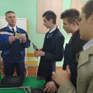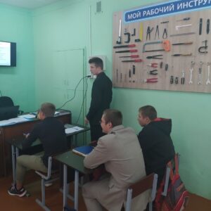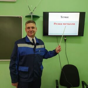 23 октября учителем Постоловским Александром Ивановичем был проведен открытый урок трудового обучения в 10 классе по теме «Резка металла». В начале занятия учащиеся совместно с педагогом знакомились с предлагаемым к изучению материалом, опираясь на презентацию. Практическая часть была нацелена на отработку умения резать металл ручным инструментом: ножницами по металлу, слесарной ножовкой, труборезом. В процессе выполнения задания учитель осуществлял целевые обходы рабочих мест с целью наблюдения, оказания помощи и проверки. Все ученики успешно справились с поставленными задачи и получили в конце урока отличные оценки.
