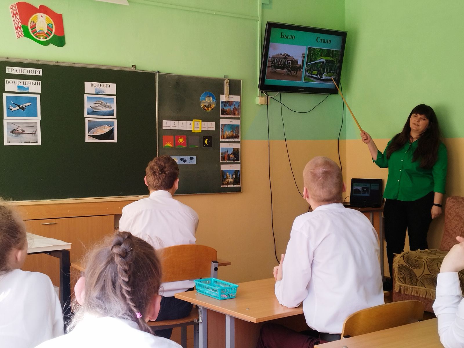 В рамках учебно-методического объединения учителей второго отделения в 8 «Б» классе прошёл открытый урок Михалевич Светланы Олеговны по учебному предмету «Человек и мир» на тему «Виды транспорта». В начале занятия учащиеся благодаря интерактивному заданию определили тему урока. Затем узнали, какие бывают виды транспорта. В течение урока дети выполняли различные задания и тем самым закрепляли полученные знания. Видеопрезентация помогла ребятам получить представление о том, как раньше выглядел транспорт. На протяжении всего урока учащиеся были активными и с интересом выполняли все задания.