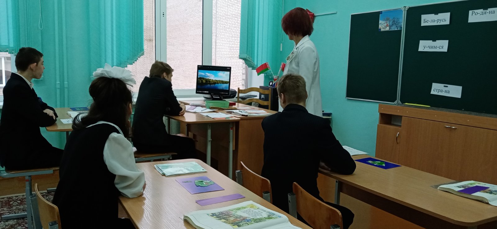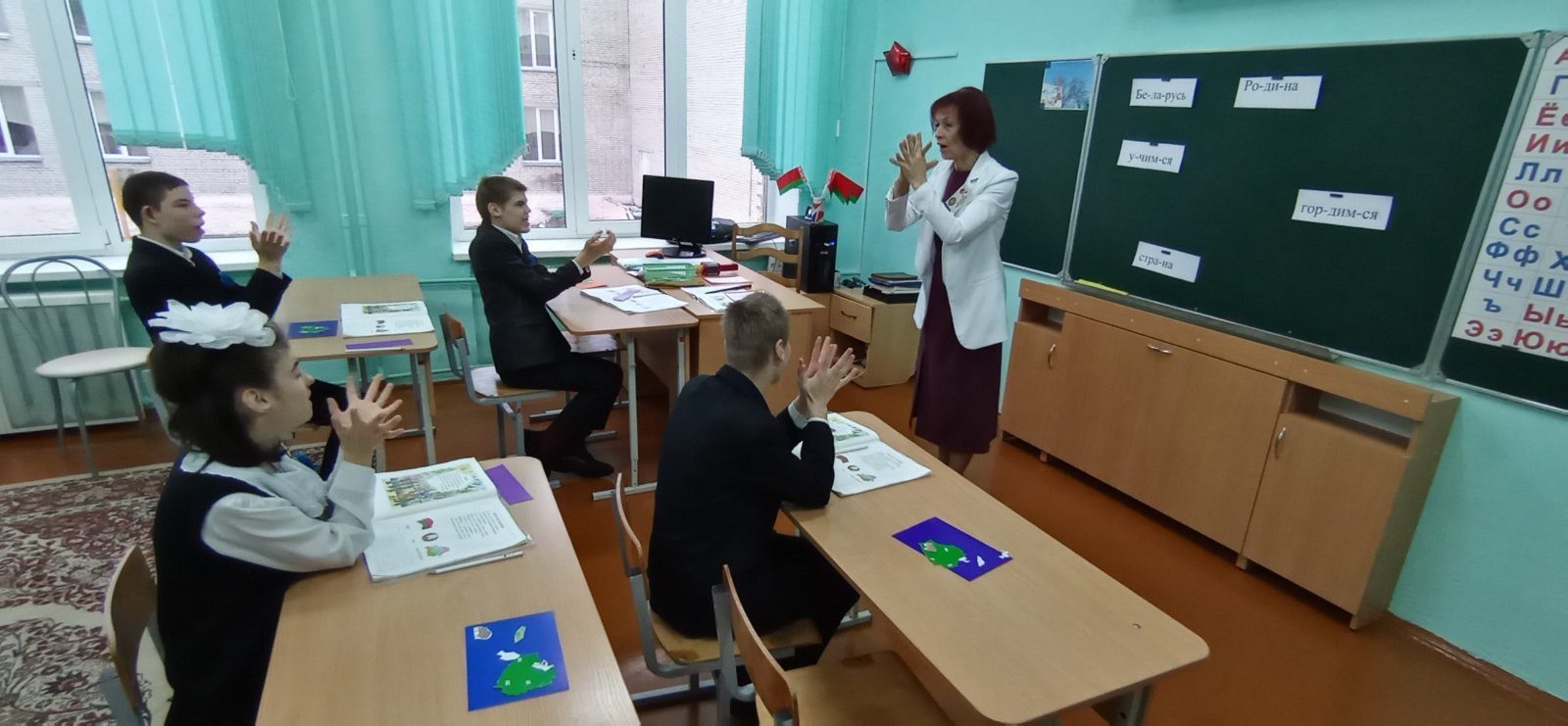 Накануне 80-летия со дня освобождения города Гомеля в 9 «Б» классе прошел открытый урок по учебному предмету «Элементы грамоты и развитие речи» на тему «Наша Республика», который был проведен учителем второго отделения Метельской Лидией Викторовной. На занятии учащиеся определяли главные символы нашей страны по иллюстрациям, находили и записывали обозначающие их слова. Ребята делились впечатлениями о природе своей Родины, её богатстве, красоте и бережном к ней отношении, рассказывали о людях и истории Беларуси друг другу и взрослым. В заключении посмотрели видеозарисовку о своей жизни в мирной стране.