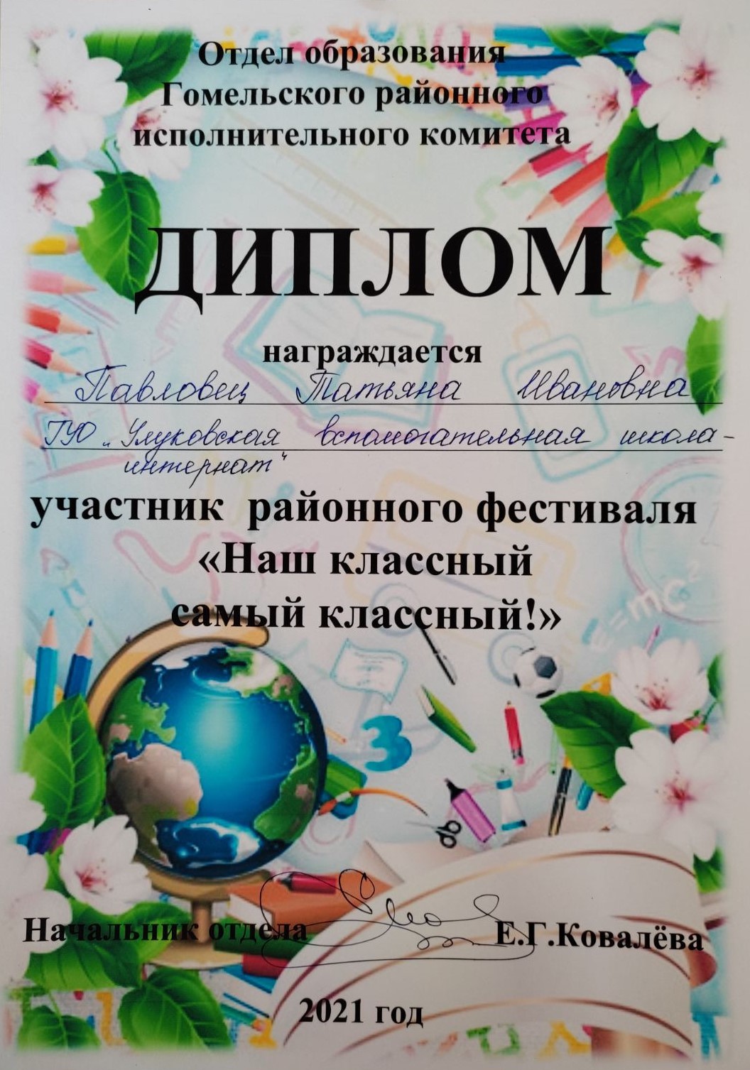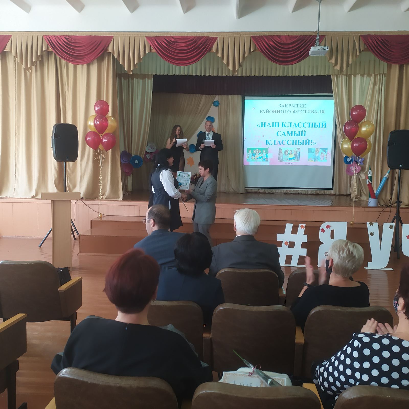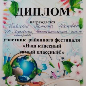 30 сентября завершился районный фестиваль «Наш классный самый классный!». Наше учреждение на конкурсе представляла классный руководитель 9 «А» класса Татьяна Ивановна Павловец. Фестиваль проходил в два этапа. В заочном туре жюри необходимо было предоставить портфолио участника «Ступени мастерства». Творческая мастерская очного тура «Моя инициатива в воспитании» включала два конкурсных задания: презентацию и мастер-класс «Успешным может быть каждый!», внеклассное мероприятие «Сделай мир добрее!». Татьяна Ивановна успешно справилась с первым этапом фестиваля и вышла в очный тур среди 6 участников, которые презентовали свою деятельность в Урицкой средней школе. По итогам конкурса были названы два победителя, работа Татьяны Ивановны в качестве классного руководителя получила достойную оценку жюри.