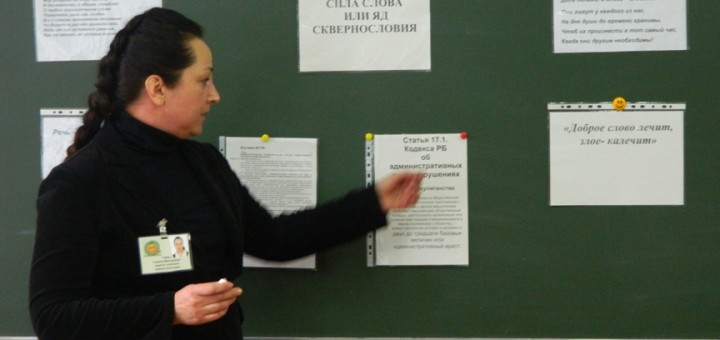 Педагог-психолог Галина Викторовна Табак провела с учащимися 9 «А» класса профилактическое занятие «Сила слова, или Яд сквернословия», в ходе которого воспитанники старались найти пути преодоления вредной привычки выражаться бранными словами. В процессе диалога ребята познакомились с экспериментами японского исследователя и российских ученых о влиянии слов на здоровье человека, изучили меры ответственности за нецензурную брань в общественном месте согласно Кодексу РБ об административных правонарушениях (статья 17.1). С целью выявления отношения к сквернословию было проведено анкетирование среди подростков «Сквернословие в моей жизни». В конце занятия ребята составили памятку добрых слов и поделились этими добрыми словами с окружающими.