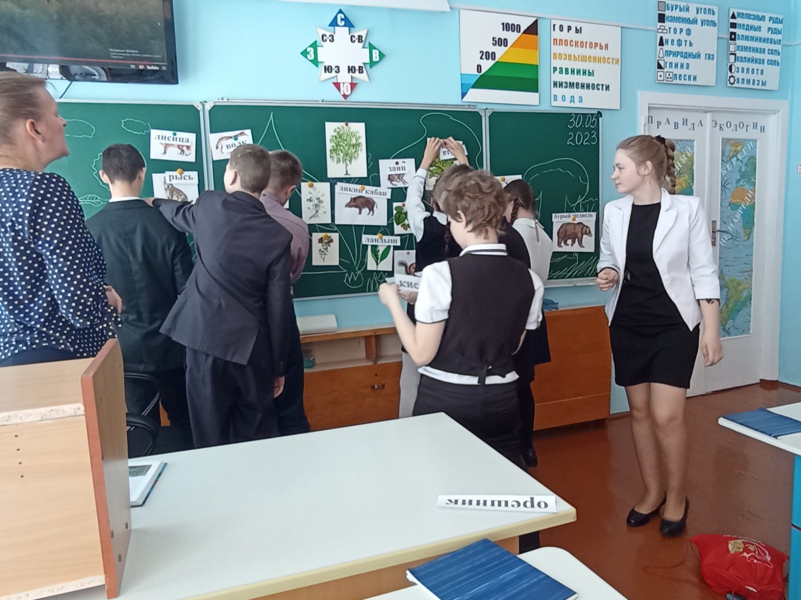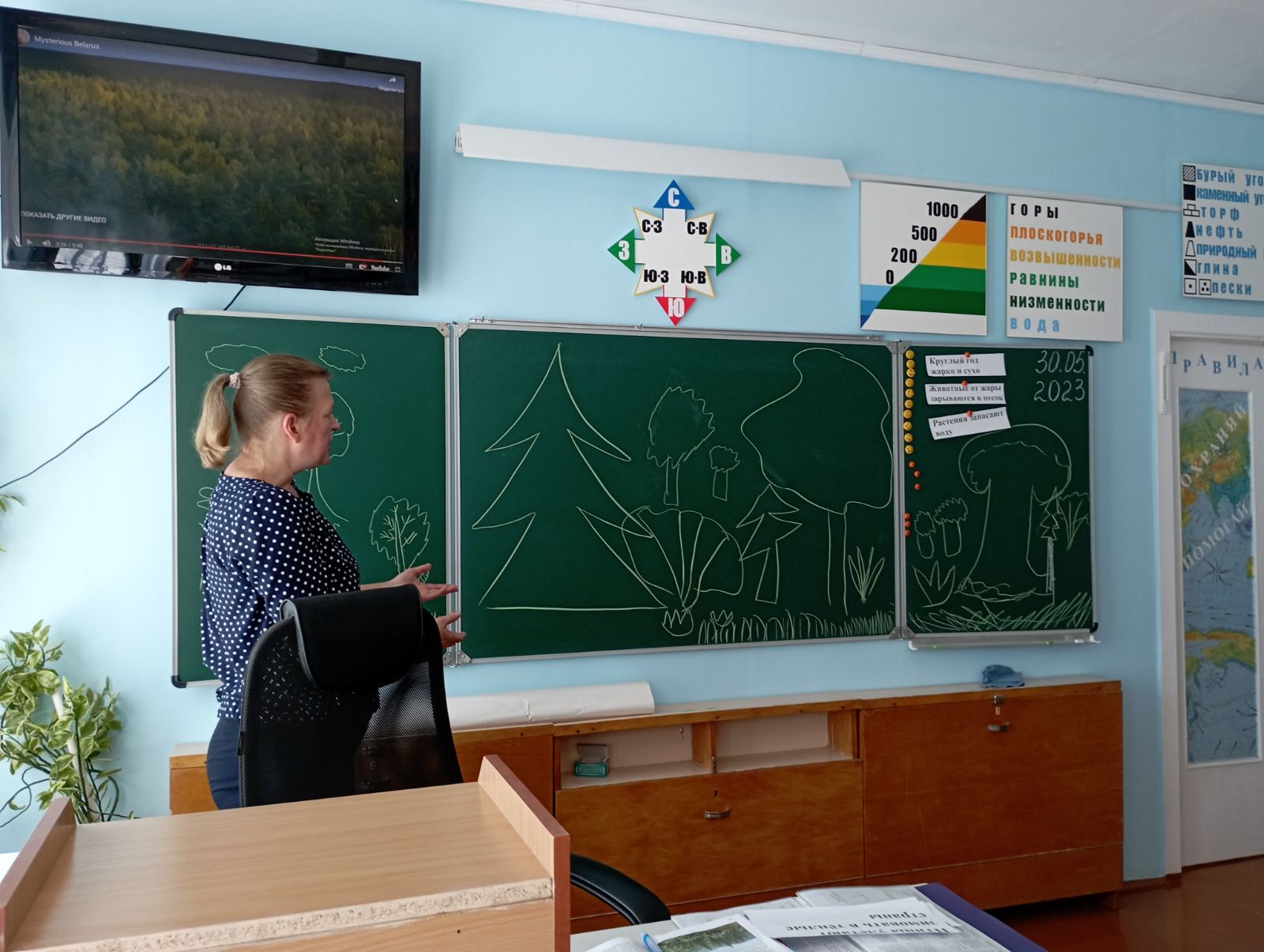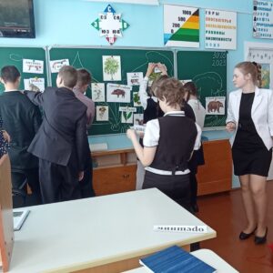 В 7 «А» классе состоялся открытый урок географии Бугаенко Светланы Петровны по теме «Растения и животные лесов Беларуси». На уроке учащиеся закрепили представления об умеренном поясе, его природных зонах и остановились на изучении лесов Беларуси. Создав на доске коллективный рисунок с изображением леса, перешли к знакомству с его растительностью и животным миром. На уроке учащиеся работали с картой поясов солнечного освещения и природных зон, расположив в зоне смешанных лесов Республику Беларусь, которая славится своей необыкновенной природой.
