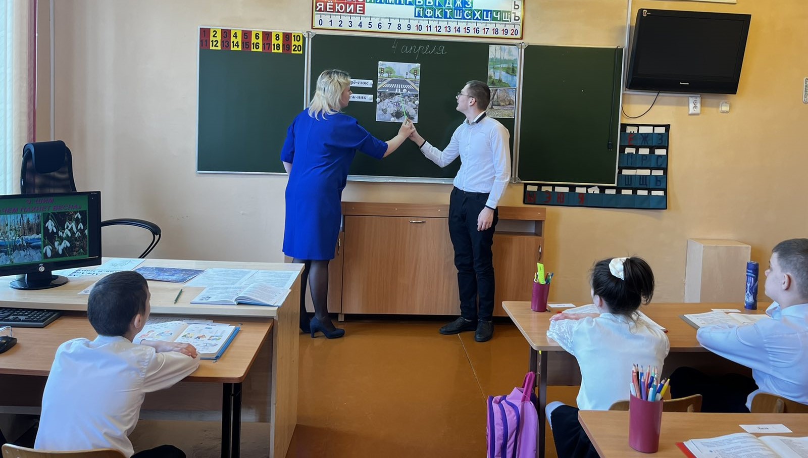 В рамках работы учебно-методического объединения учителей начальных классов Смирновой Наташей Николаевной был проведен открытый урок литературного чтения в 5 «А» классе по теме «Э.Шим «Чем пахнет весна». В процессе учебного занятия дети вспомнили сезонные изменения в природе весной, расширили представления о первоцветах. На уроке учащиеся учились читать текст выразительно. Выполняя задание «Собери пословицу «, развивали умение понимать содержание прочитанного. Смена видов деятельности позволяла ребятам на протяжении всего урока оставаться активными. Учебное занятие прошло в атмосфере сотрудничества между учителем и учениками.
