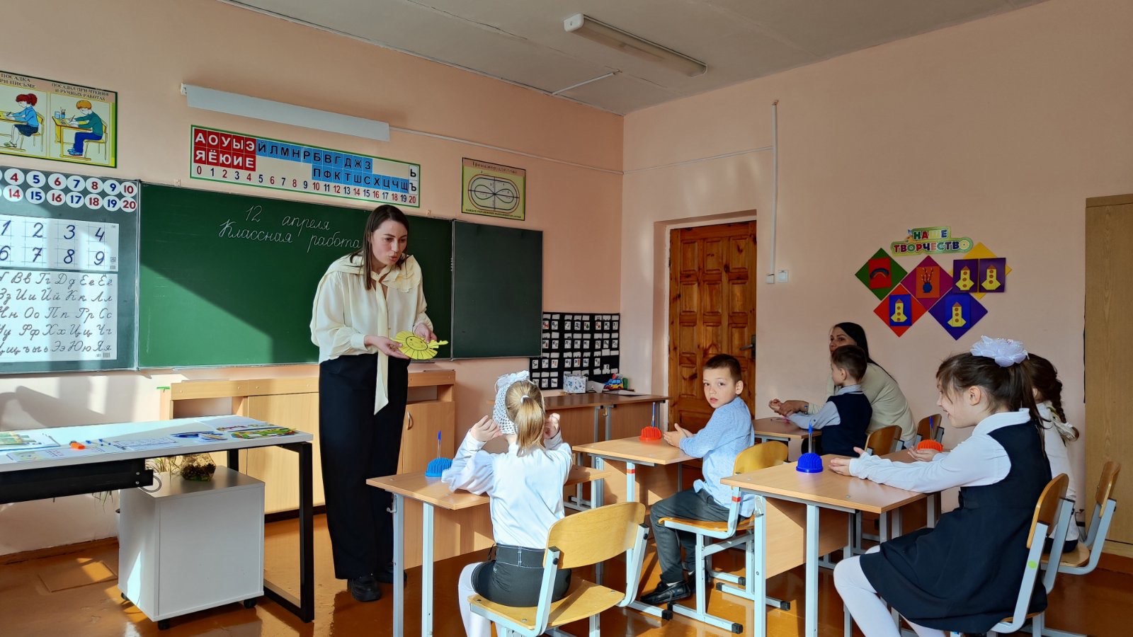 12 апреля в 1 «А» классе состоялся открытый урок Федосенко Ирины Сергеевны по учебному предмету «Русский язык» в рамках учебно-методического объединения учителей начальных классов по теме «Звук и буква Р, р». На занятии дети впервые знакомились с буквой «Р», учились ее писать. При помощи волшебного поезда ребята проехали по станциям «Вспоминайка», «Узнавайка» и «Закрепляйка», вспомнили сказку «Репка» и попробовали овощ на вкус. Различные виды деятельности, разнообразие наглядного материала оставили положительное впечатление у детей от урока, и все учащиеся в процессе рефлексии выбрали «солнышко».