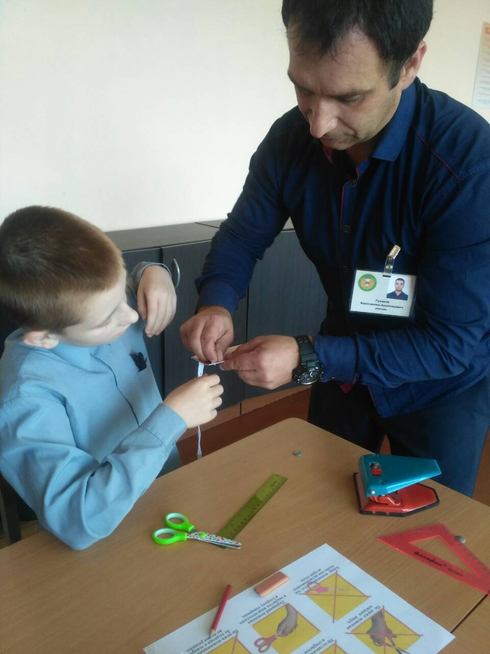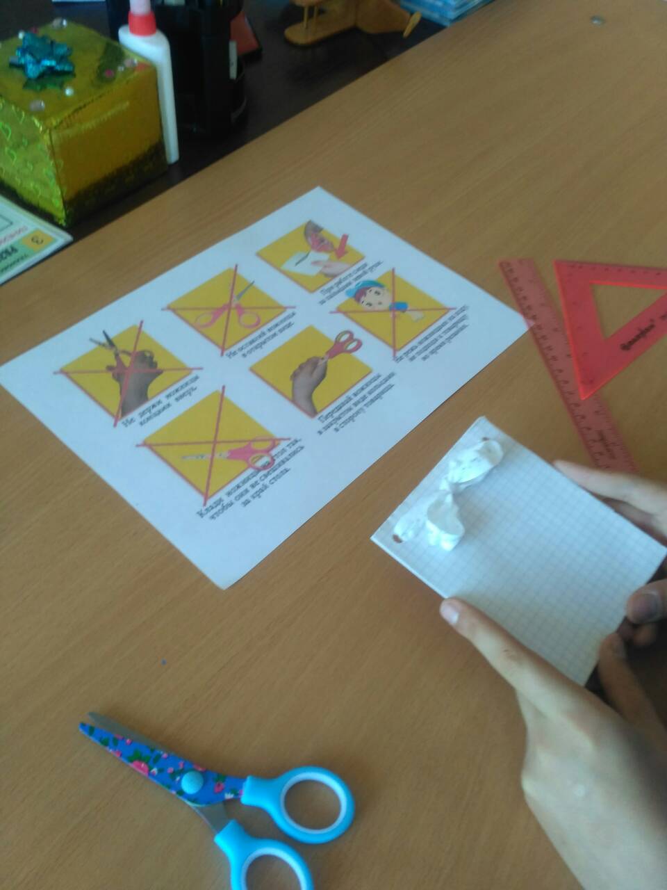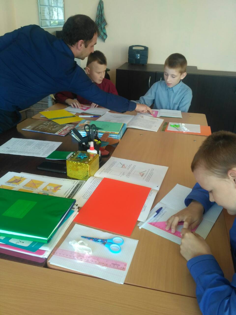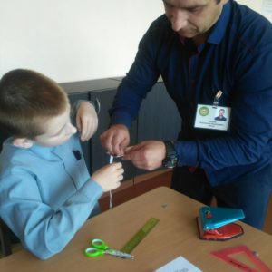 В рамках методического объединения учителей трудового обучения Гусаков Константин Анатольевич провел в 5 классе открытый урок столярного дела по теме «Разметка прямоугольных деталей по линейке и угольнику». Используя основной разметочный инструмент, учащиеся изготавливали на занятии блокнот. То, что работа имела практический выход, создавало мотивацию к обучению и являлось стимулом в работе. Вместе с тем ребята вспомнили устройство линейки и угольника, правила разметки, поупражнялись в проведение разметки с помощью линейки и угольника при изготовлении блокнота. С урока дети уходили с блокнотами, сделанными своими руками. Ребята остались довольны результатами своей работы!