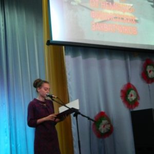 Вновь накануне Дня освобождения Гомельщины от немецко-фашистских захватчиков мы проводим Вахту памяти. По традиции посетили «детей войны», проживающих в отделении сестринского ухода, которым воспитанники 3 и 5 «А» классов подарили теплоту своих сердец и замечательные жизнеутверждающие панно. Ребята постарше побывали у памятников и могил погибших во время Великой Отечественной войны, почтили память павших. На митинге, посвященном 74-й годовщине освобождения, возложили цветы к мемориалу, расположенному в нашем агрогородке. 24 ноября в честь незабываемой даты состоялся концерт «Город над Сожем». Ещё и ещё раз вспоминаем о бессмертных подвигах рядовых бойцов и офицеров, юных пионеров-героев, партизан и подпольщиков.
