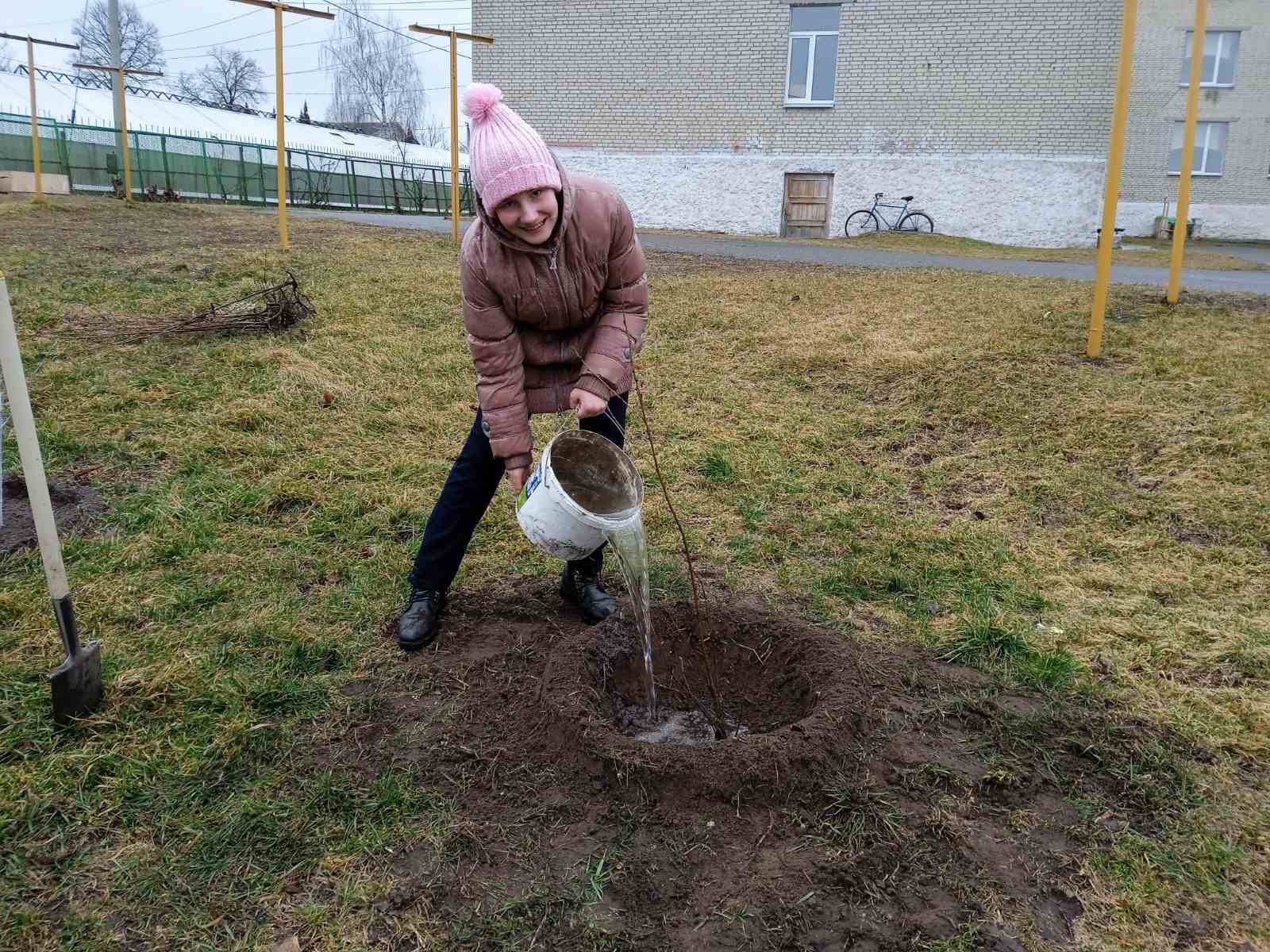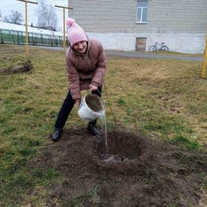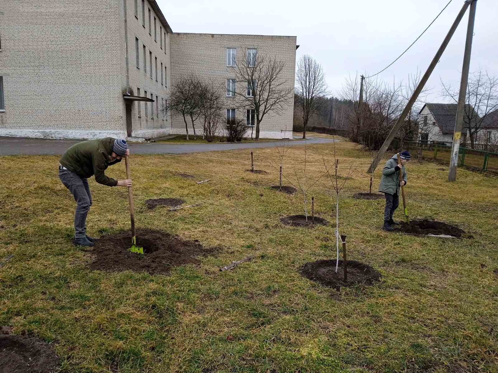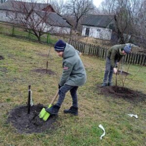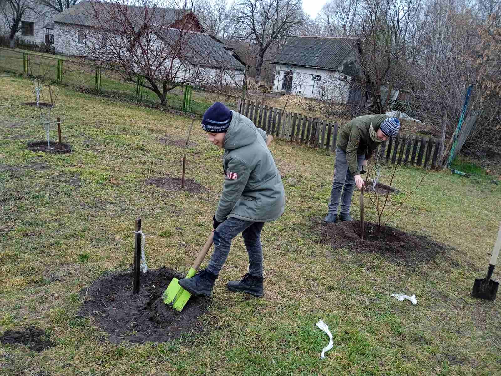 Трудовой десант в школьном саду.
