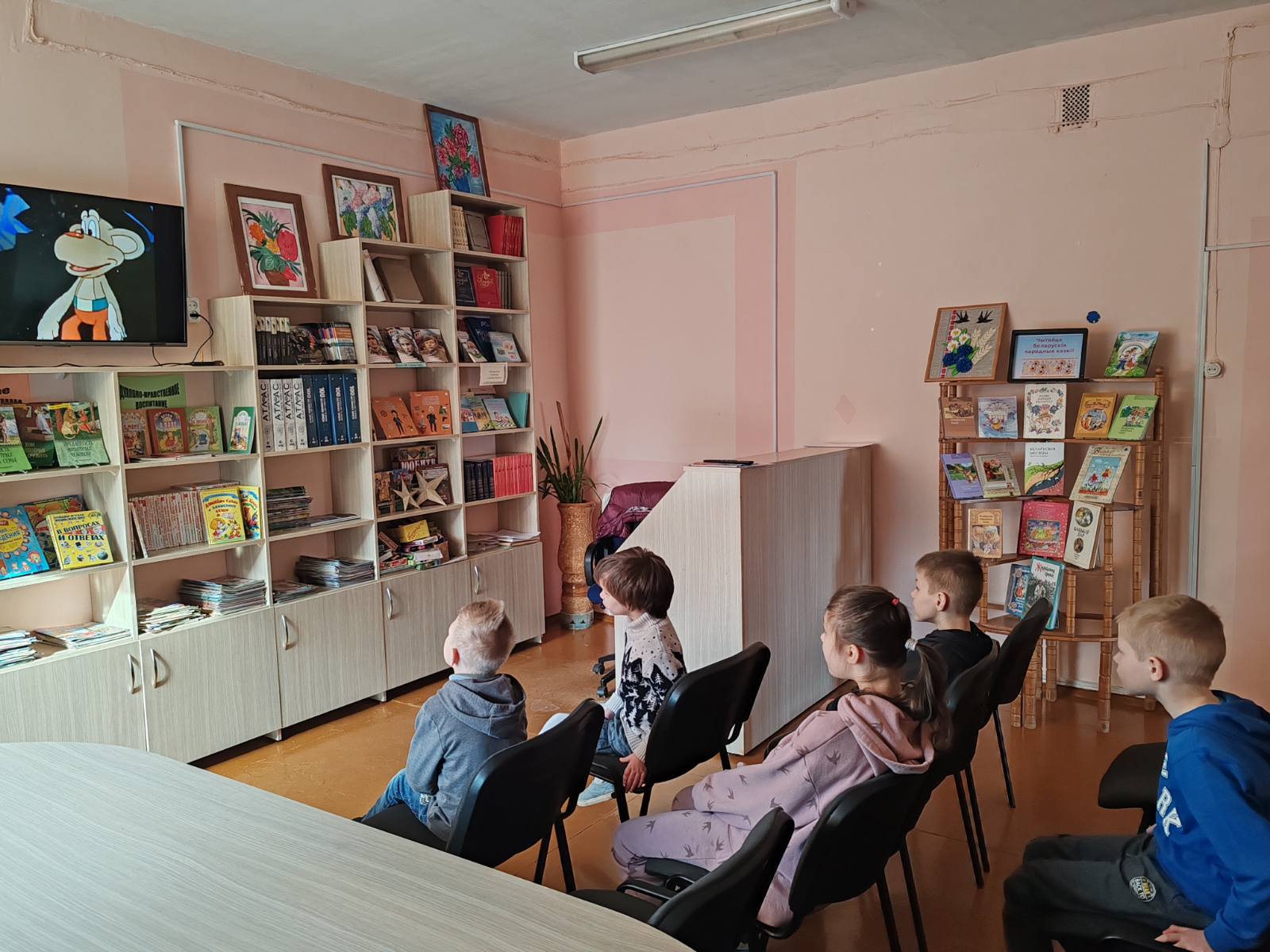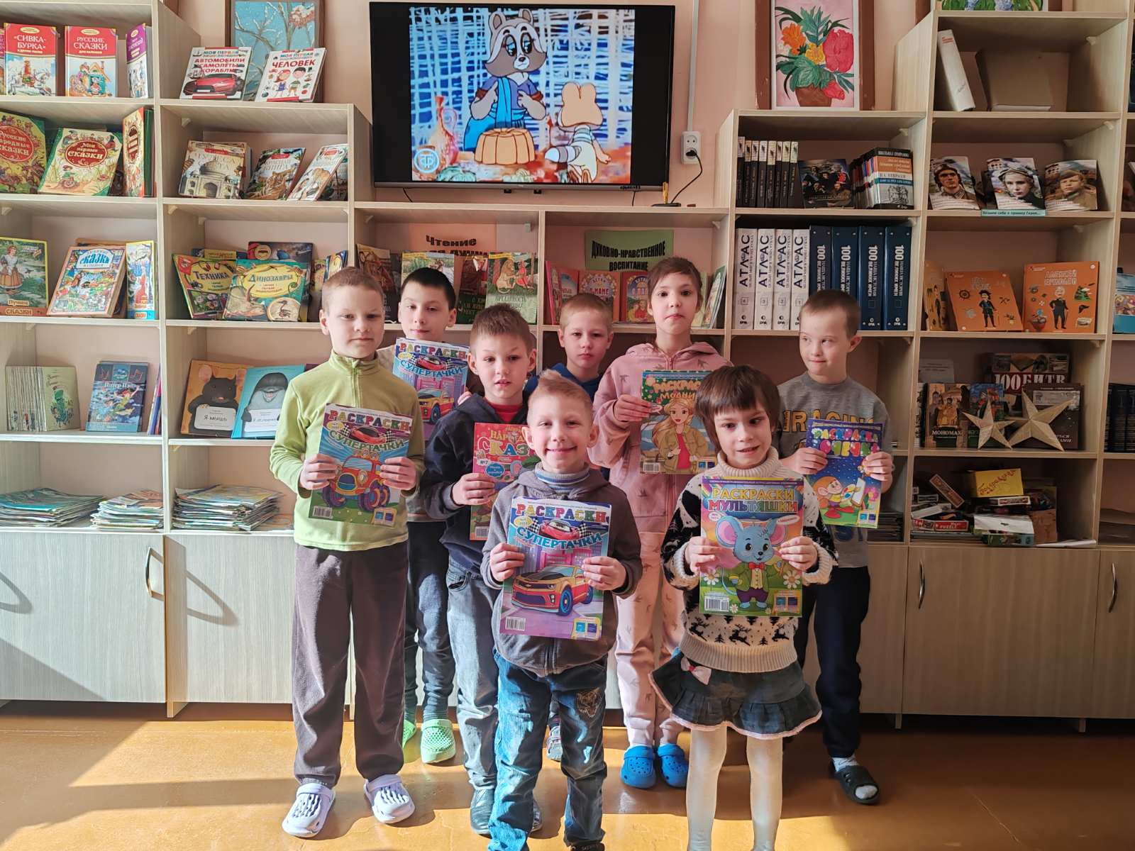 Кинолекторий. Просмотр мультфильмов «Кошкин дом», «Жихарка», «Цветик-семицветик» (дошкольное отделение, начальные классы).