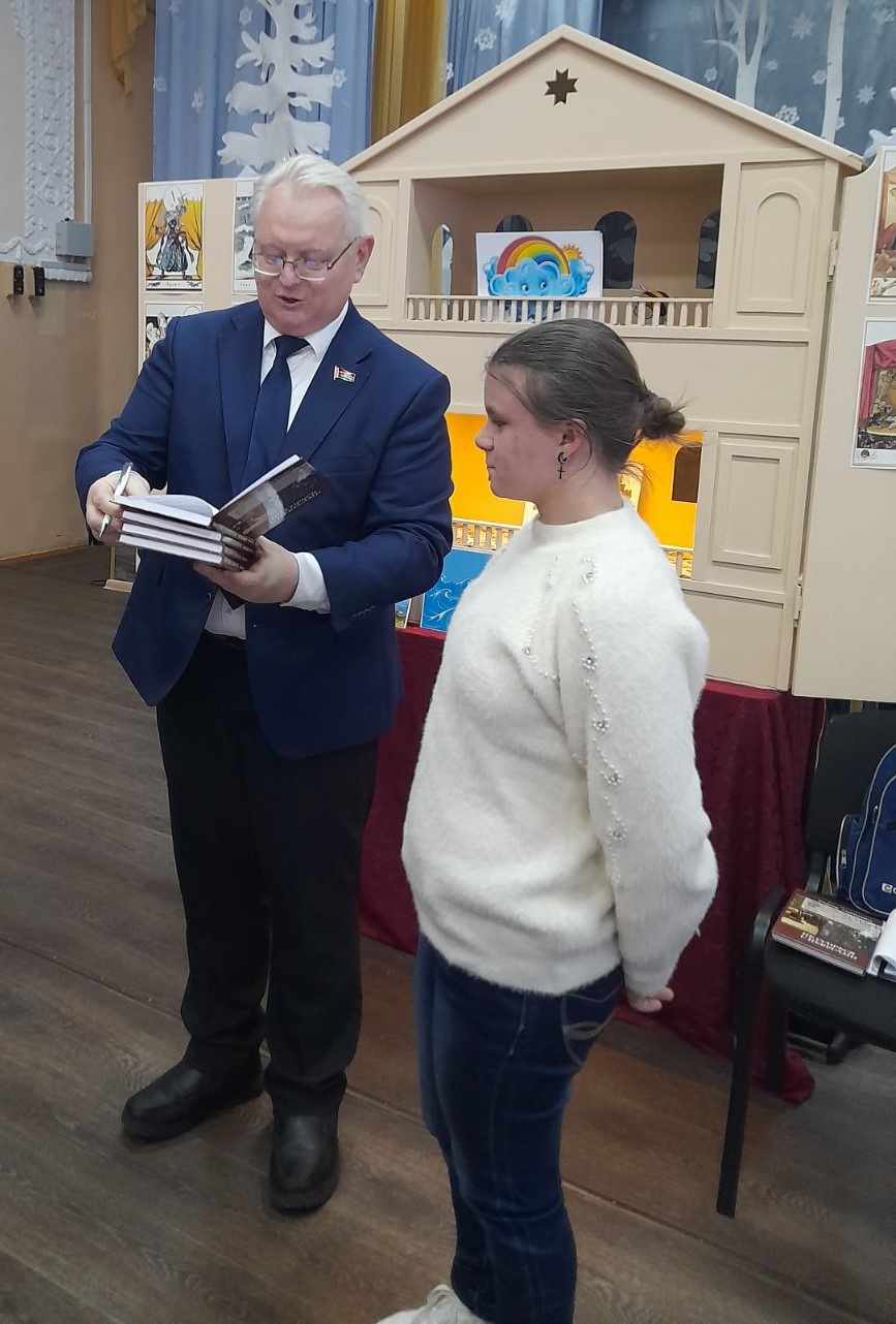 Сегодня школу посетил депутат Палаты представителей Национального Собрания Республики Беларусь, член Союза писателей Владимир Николаевич Гаврилович. Известный автор подарил школе свои книги, которые пополнят библиотечный фонд и позволят детям прикоснуться к литературным шедеврам. Вместе с депутатом в школе побывала директор областной универсальной библиотеки имени В.И.Ленина Татьяна Анатольевна Забияко. Её визит стал особенным: для гостей и учеников была представлена постановка батлейки, подготовленная сотрудниками библиотеки. Увлекательное кукольное представление вызвало неподдельный интерес и подарило яркие эмоции всем зрителям. Мы искренне благодарим наших гостей за внимание и заботу о духовном развитии молодого поколения.