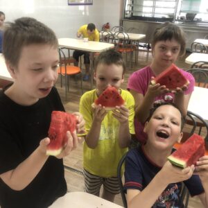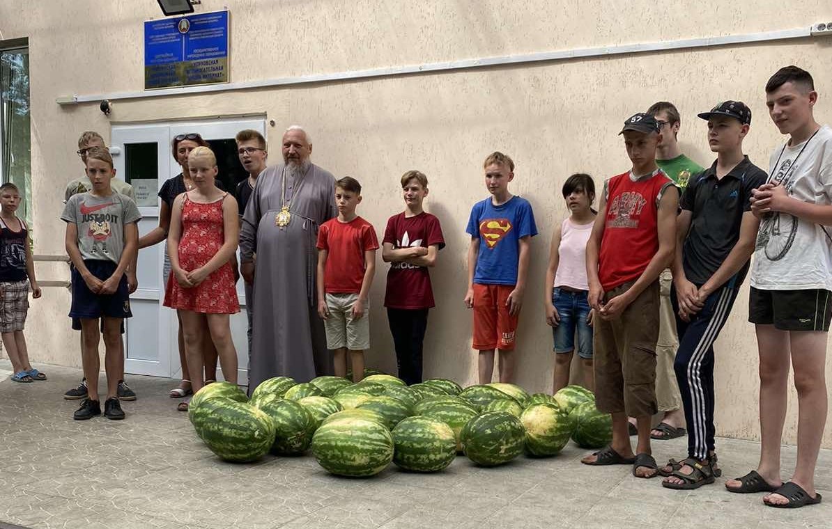 14 августа наше учреждение посетил Высокопреосвященнейший Стефан, архиепископ Гомельский и Жлобинский, в сопровождении секретаря Гомельской епархии протоиерея Георгия Алампиева. Владыка привез для детей арбузы. Детишки очень обрадовались сладкому угощению, так как обожают это лакомство. Архипастырь благословил воспитанников и пожелал Божией помощи в новом учебном году.