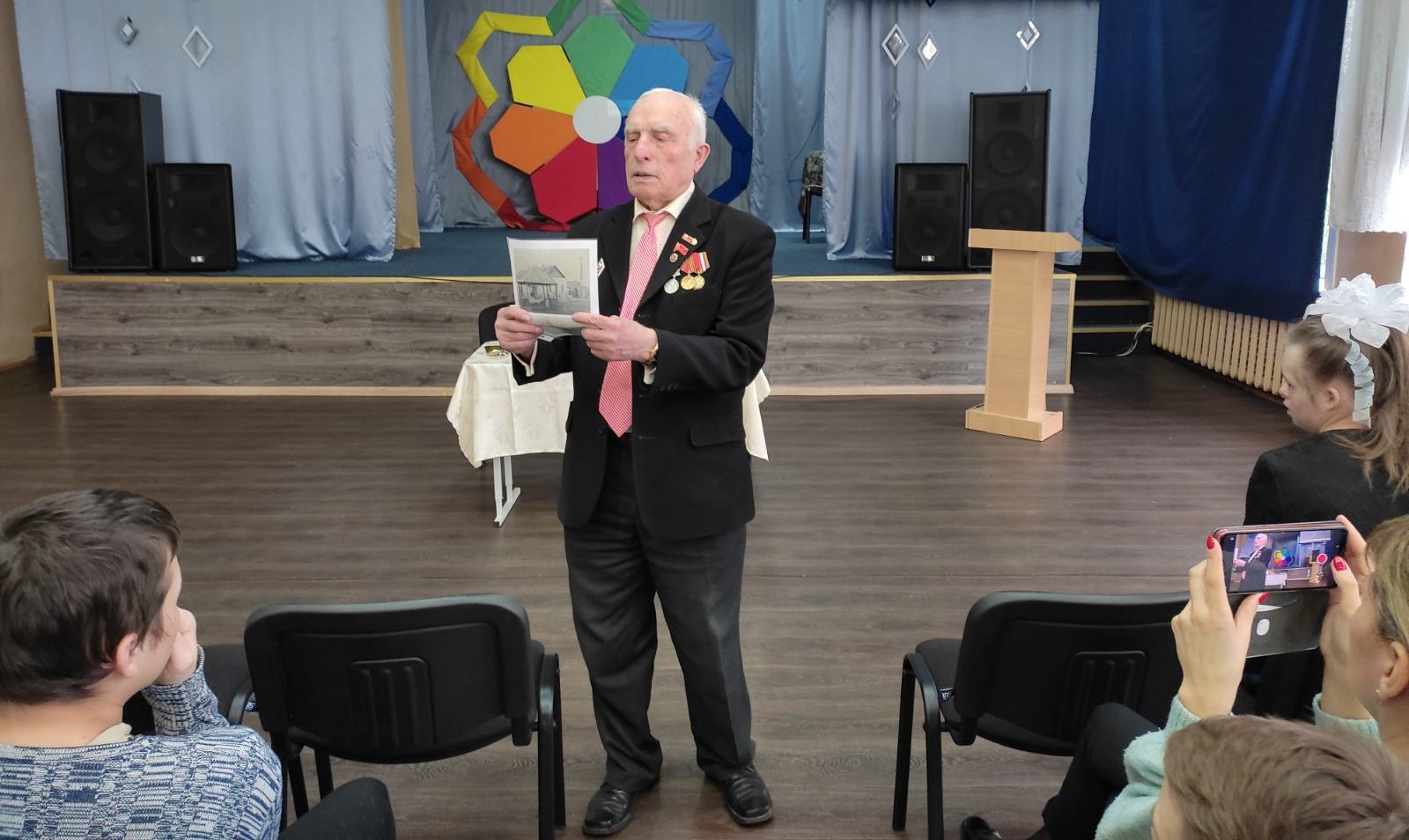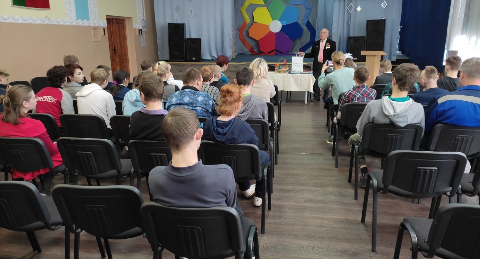 Сегодня у педагогов и воспитанников школы-интерната состоялась теплая встреча с выпускником 50-х годов прошлого столетия Николаем Павловичем Межохиным, который поделился воспоминаниями о прожитых годах и прошлом нашего учреждения. С замиранием сердца присутствовавшие слушали рассказ человека с легендарной судьбой. Николай Павлович поведал о своих бедах в военное время, когда в трехлетнем возрасте он лишился матери и стал малолетним узником концлагеря в Озаричах. Рассказал о школьных годах в Улуковском «Спецдетдоме № 20 для круглых сирот», где пробыл с марта 1944 года по август 1953. О детдоме у него остались самые прекрасные воспоминания, и этот период жизни остался в памяти раем, о чём он и написал в своём стихотворении. Поделился Николай Павлович и последующими событиями своей жизни. Сейчас он проживает в Гомеле и является заместителем председателя Правления Гомельской общественной организации «Дети войны», .