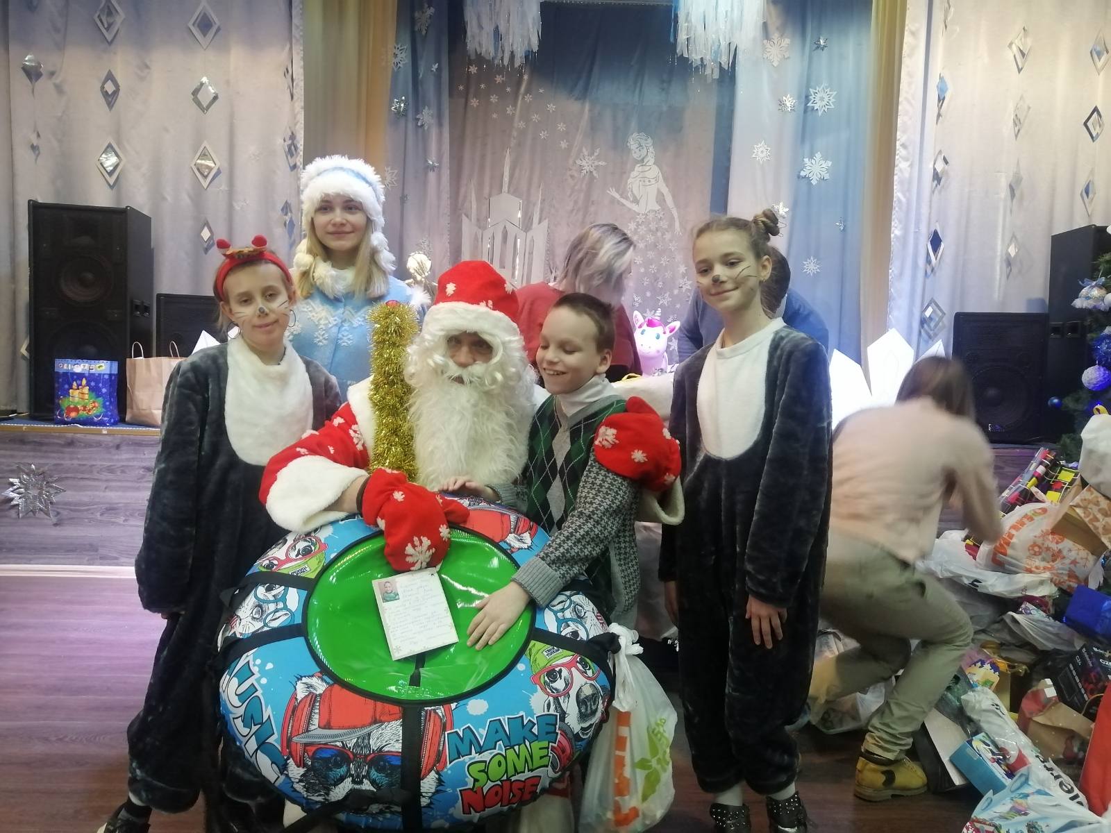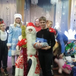 Накануне Нового года уже много лет подряд воспитанники школы пишут письма Деду Морозу, которые потом развешивают на ёлках в торговых центрах города Гомеля. Добрые люди исполняют заветные желания детишек. Организовали и принимают участие в такой акции Перегуда Дмитрий и Юлия. Сегодня вместе со своими друзьями они привезли подарки ребятам. Вот так благодаря неравнодушным и отзывчивым людям случаются чудеса в жизни воспитанников школы-интерната!
