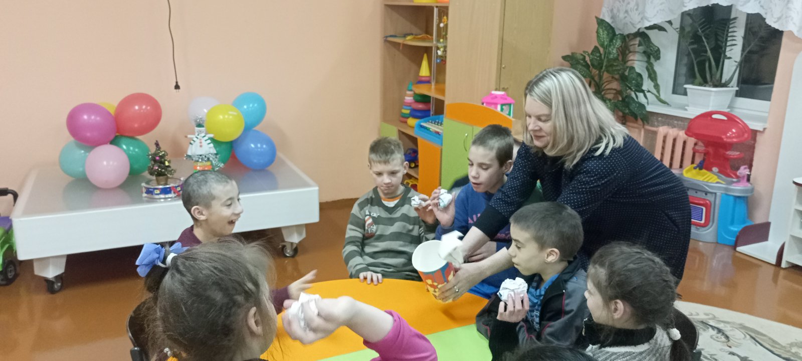 05.01 Подарки и развлечения от новогодних гостей с Благотворительной ёлки в ТРЦ «Мандарин Плаза», из БРСМ, депутата Данченко А.М., волонтеров предприятий и школ района.