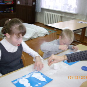 В 5 «Б» классе прошло открытое занятие «Зимушка-зима!» Ребята отправились на прогулку в зимний лес. В лесу дети остановились на полянке и любовались чудесным зимним пейзажем. На полянке ребята играли в снежки, помогли грустному снеговику, слепили для него друзей. В конце занятия дети сделали аппликацию «Зимний пейзаж».